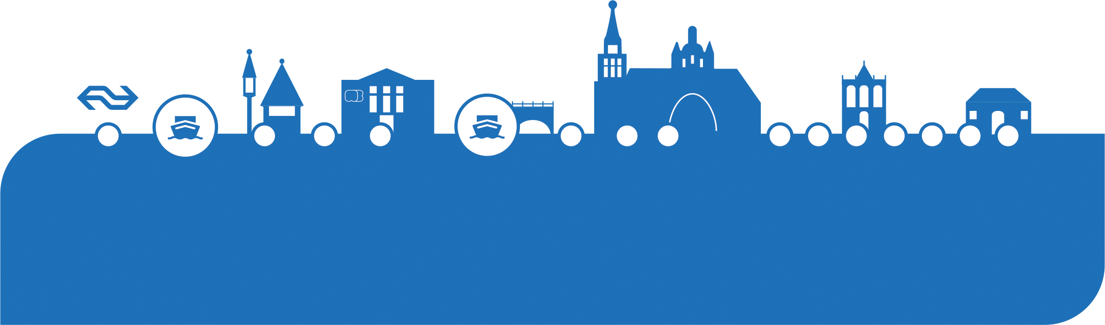 De route begint en eindigt op het Stationsplein, maar de passagiers kunnen in- en uitstappen waar ze willen (mits de chauffeur dit veilig vindt).
